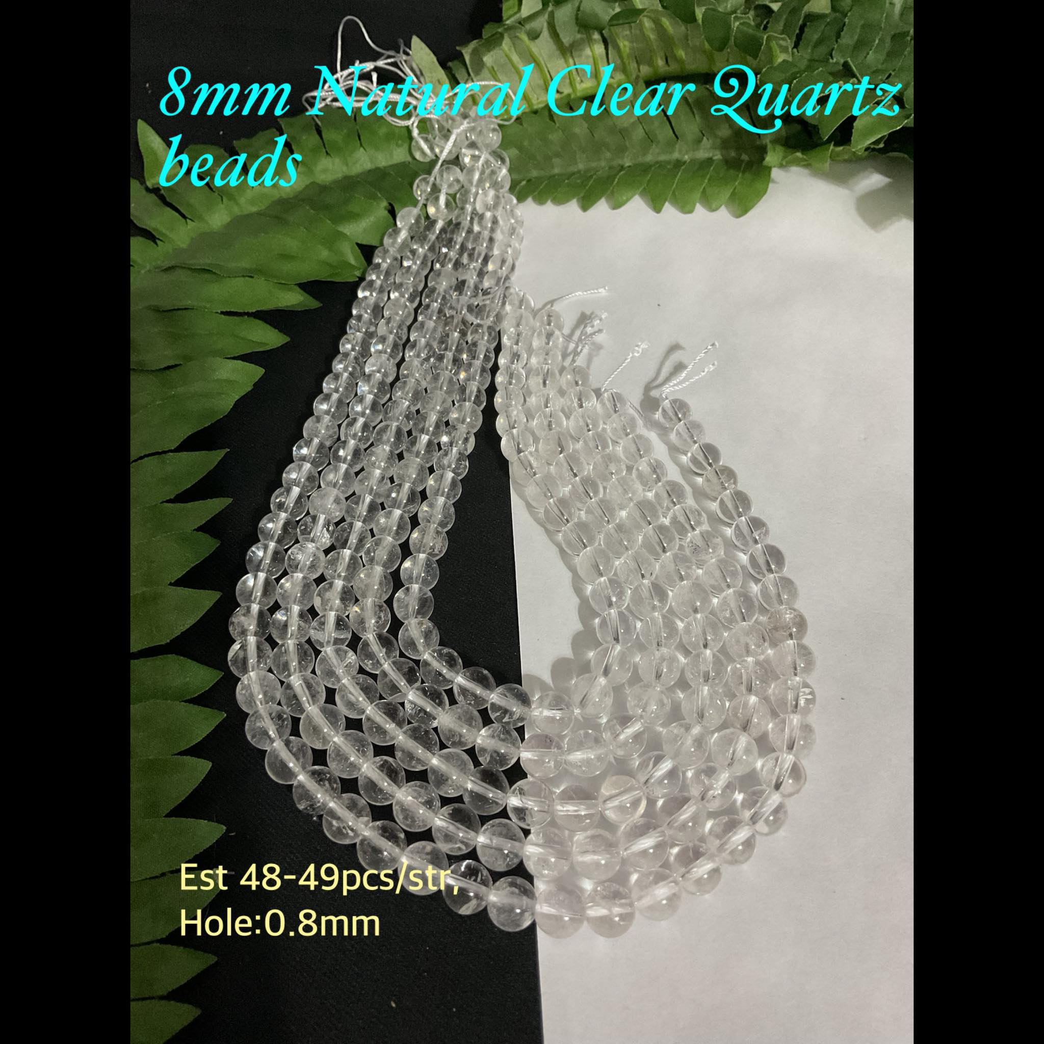 8mm Natural Clear Quartz beads (est 47pcs)