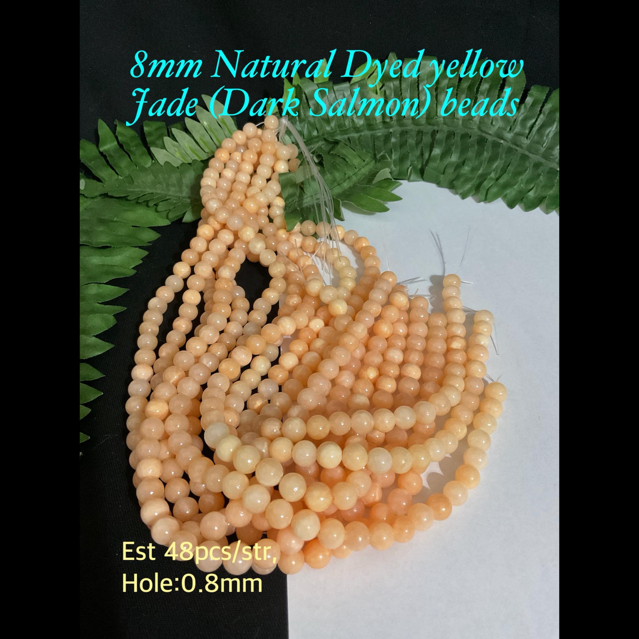 8mm Natural Dyed Yellow Jade (Dark Salmon) beads (est 48pcs)