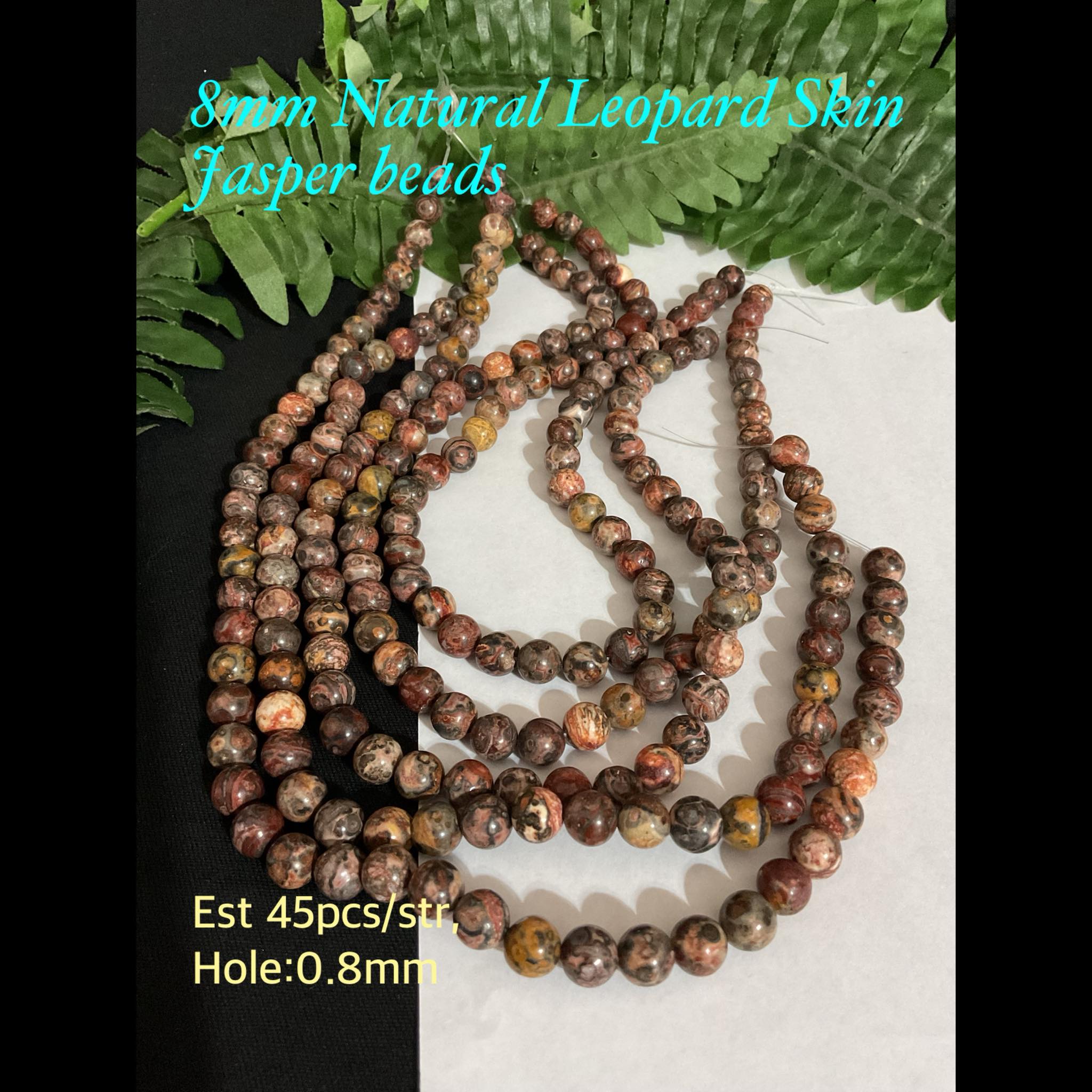 8mm Natural Leopard Skin Jasper beads (est 45pcs)