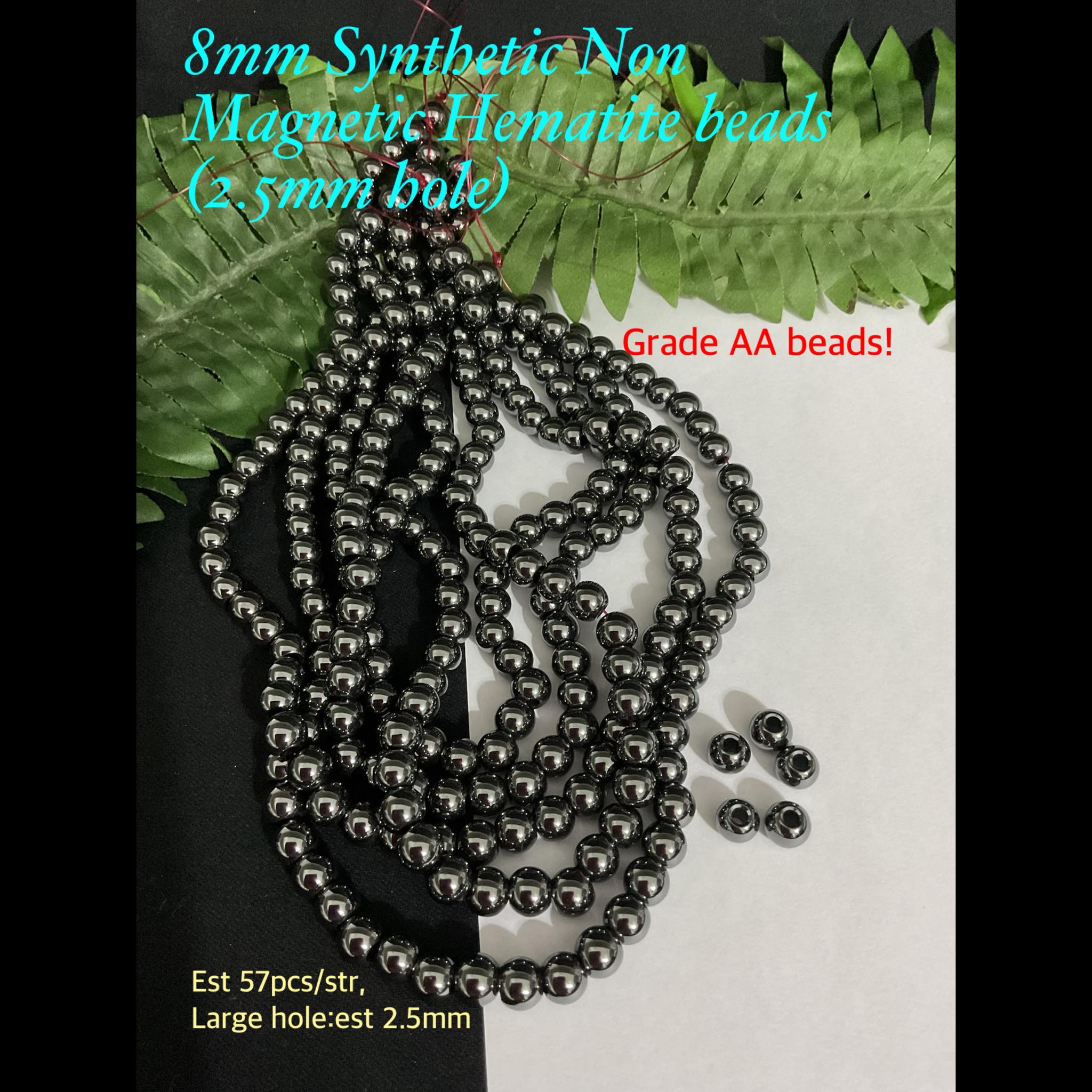 8mm Synthetic Non Magnetic hematite beads (est 57pcs, 2.5mm Hole)