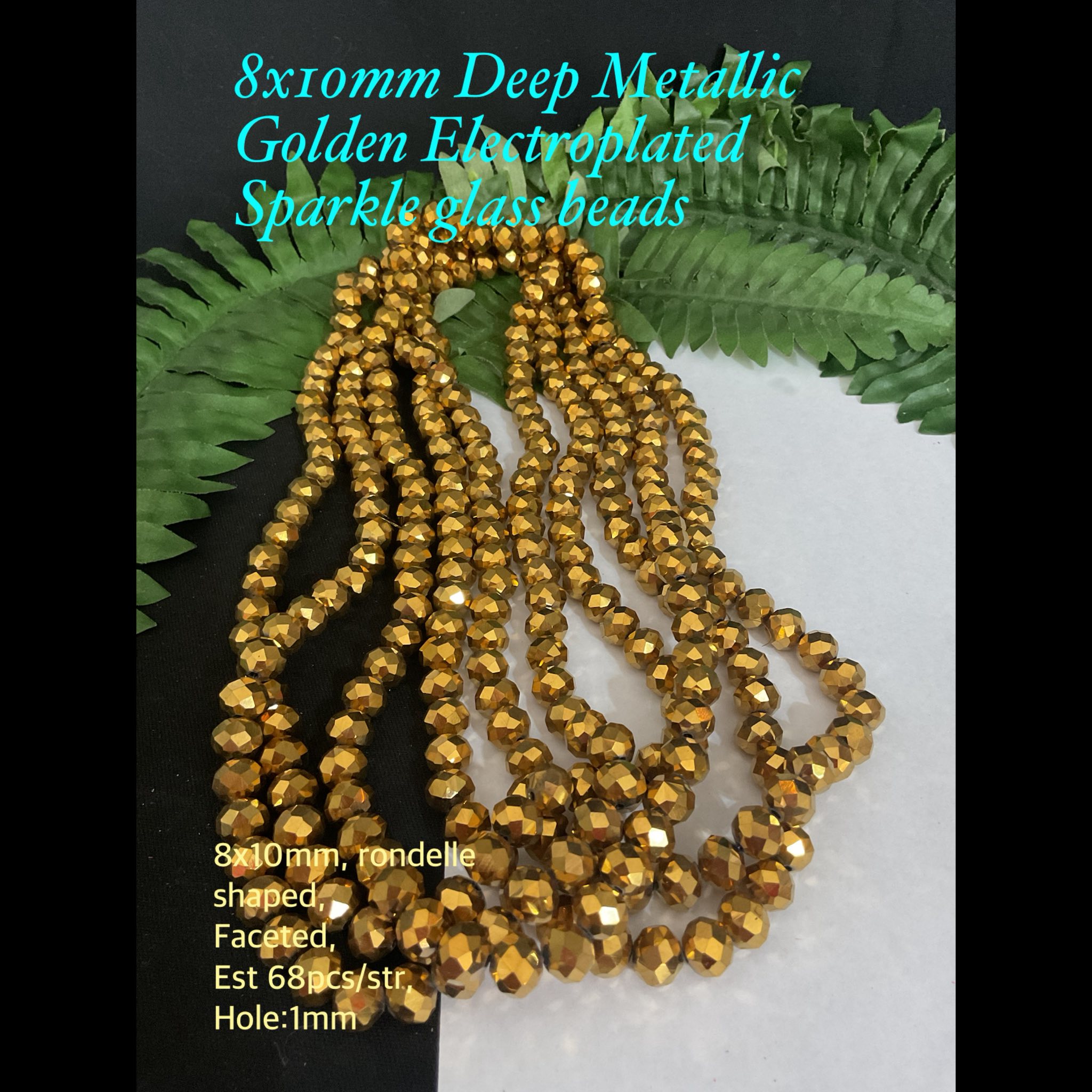 8x10mm Deep Metallic Golden Electroplated Sparkle glass beads (est 68pcs)