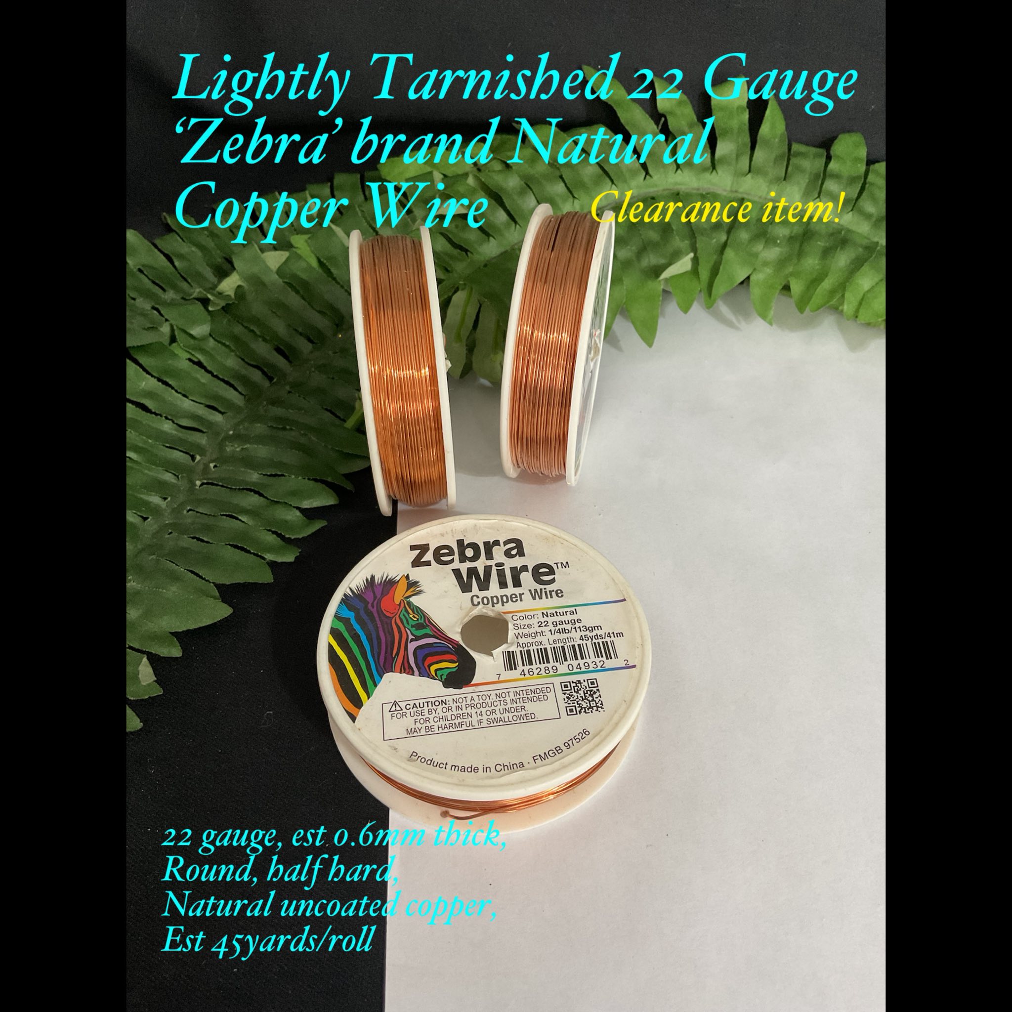 Lightly Tarnished 22 Gauge ‘Zebra’ Brand Natural Copper wire (est 45yards)