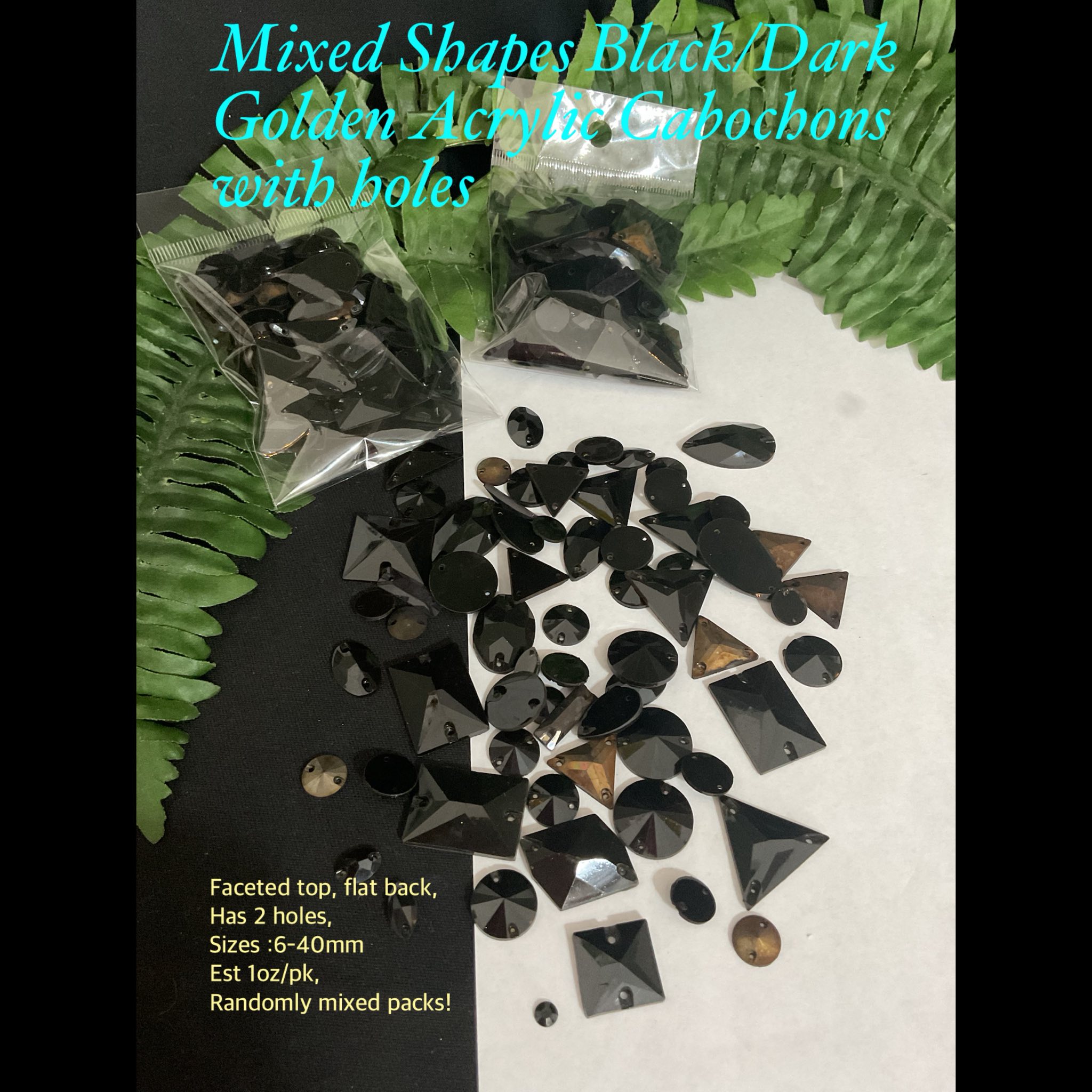 Mixed Black/Dark Golden 3D Acrylic cabochons with holes (est 1oz)