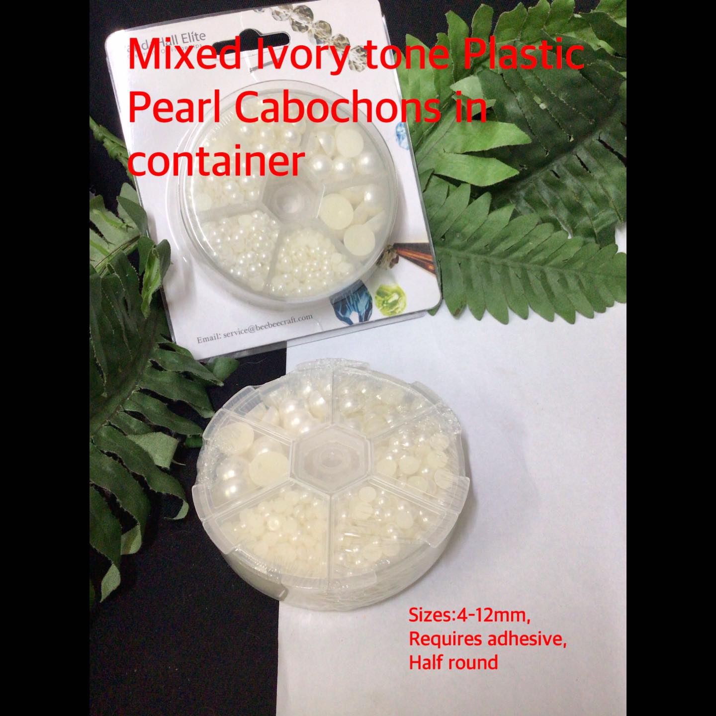 Mixed Ivory tone Plastic pearl Cabochons in container